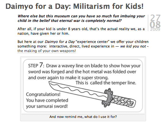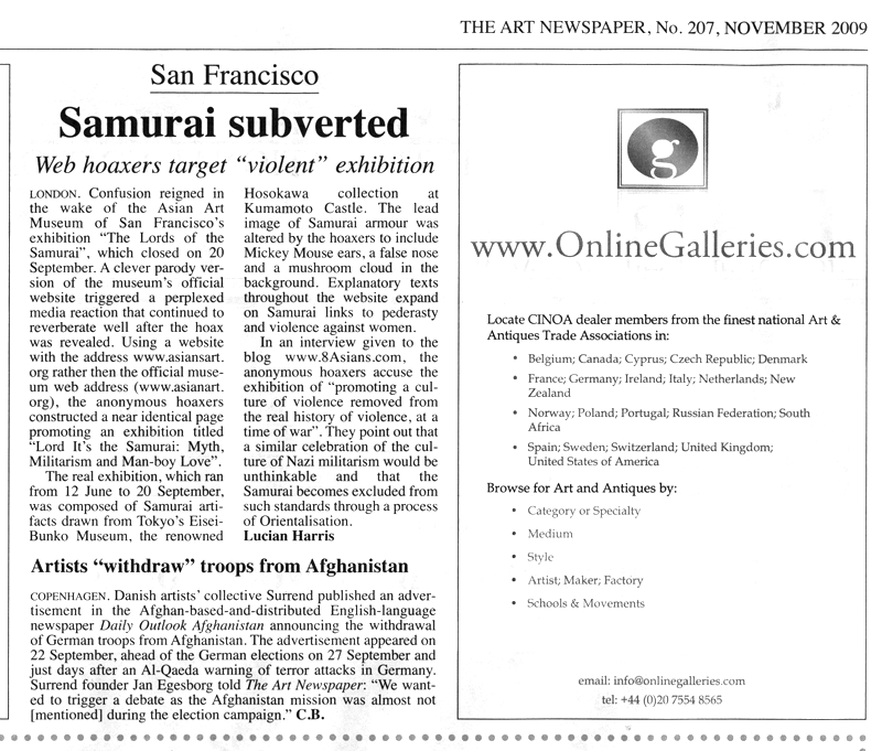 All aspects of this critique were explicated on the Lord Its the Samurai exhibition webpage, rife with supporting links to sources of record.