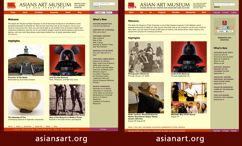 Museum Website: www.asiansart.org vs. asianart.org. Online presence enabled international viral distribution. While the sites look nearly identical, the code